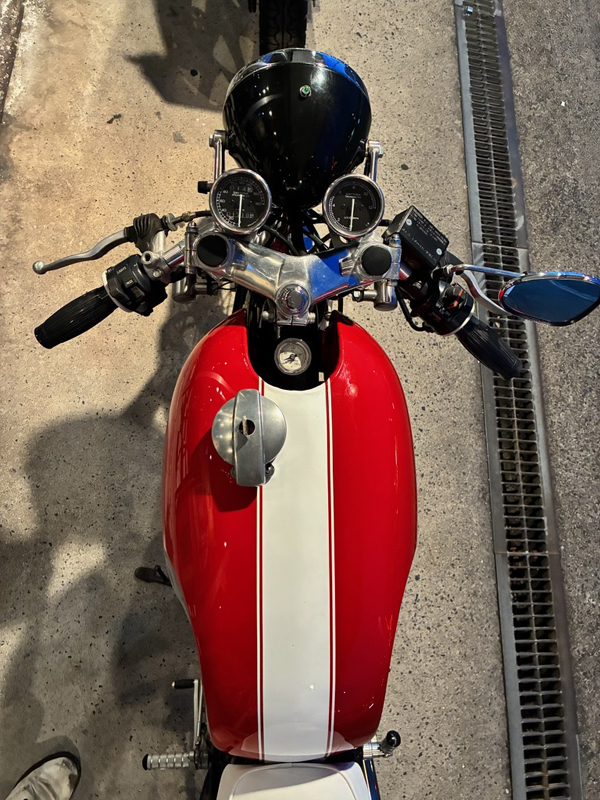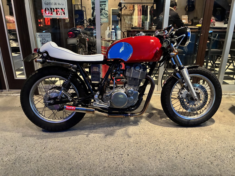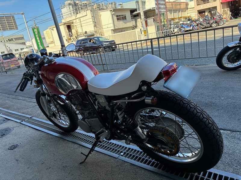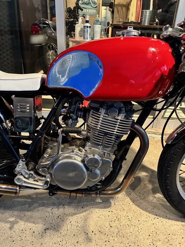 ・オリジナルペイントBSAアルミタンク + ペイトンプレイス・セミダブルシート(ショットガンホワイトレザー仕様)